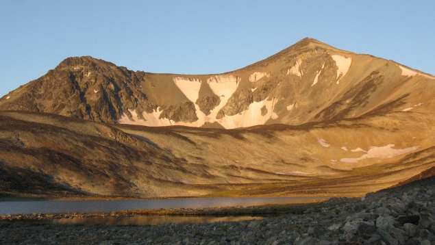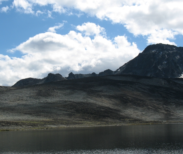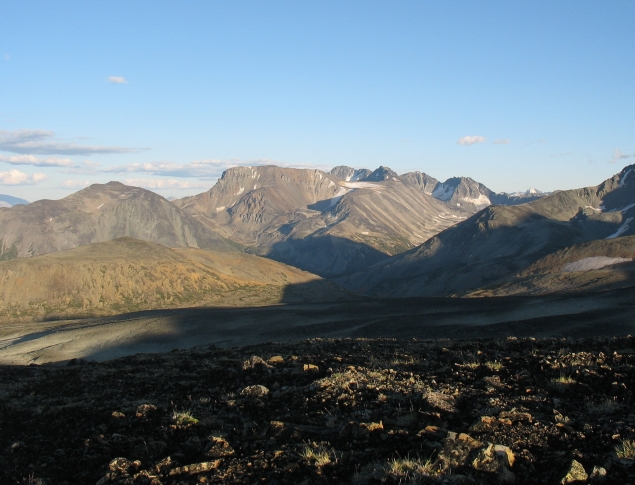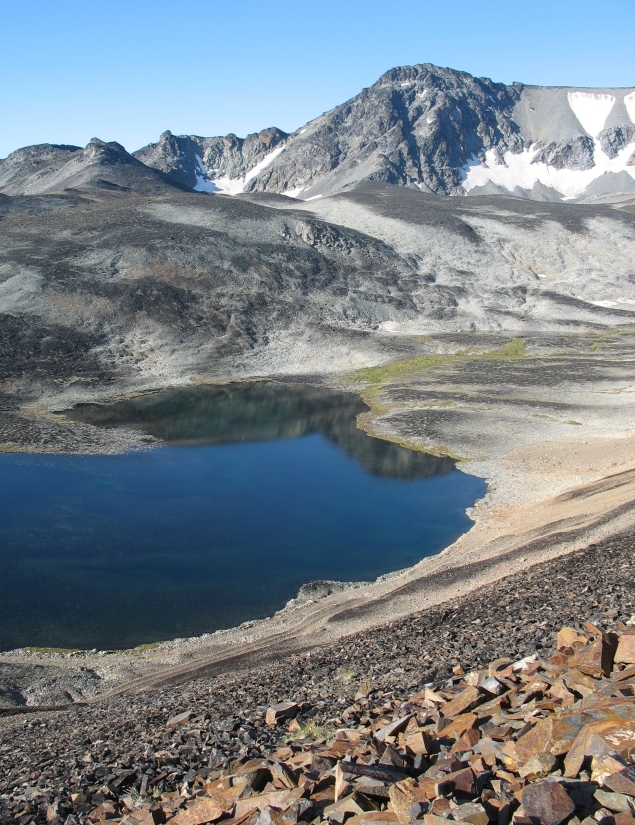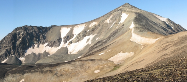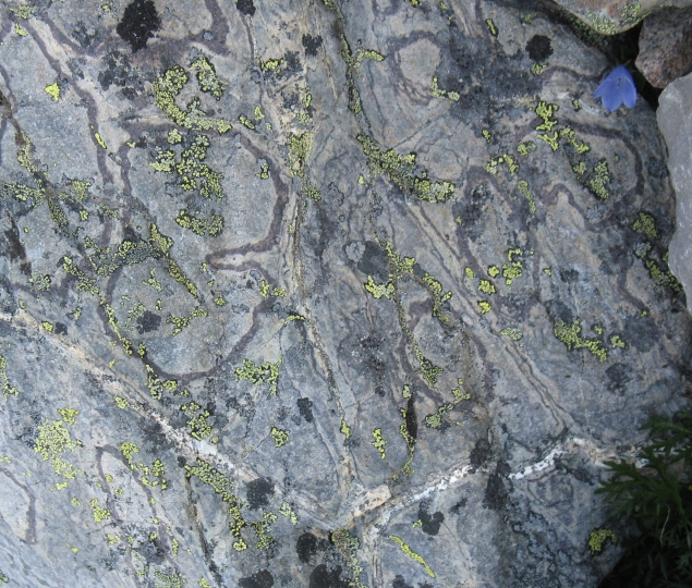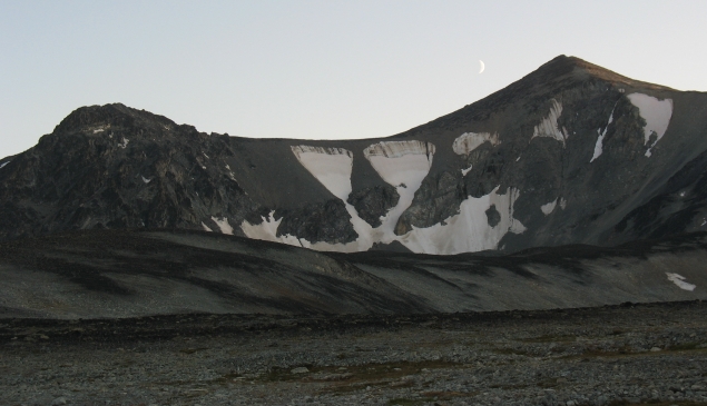 I suspect the lighter rock was covered in glacial ice until the last few years