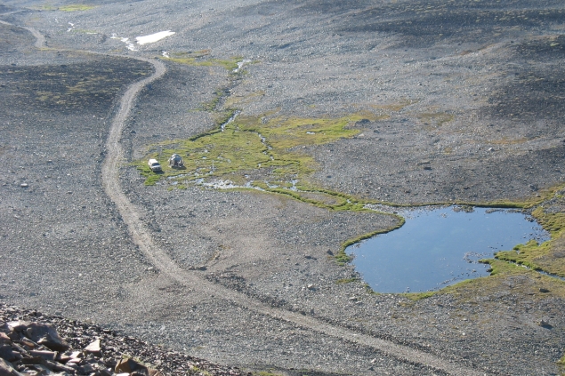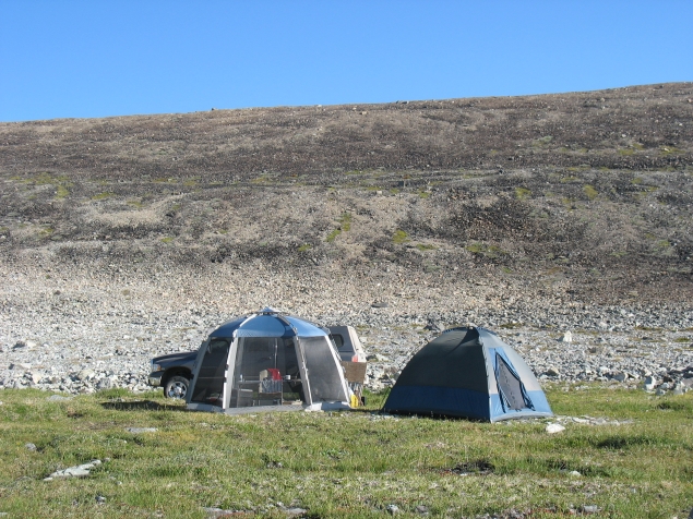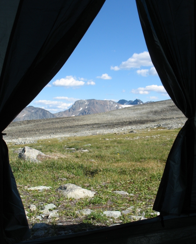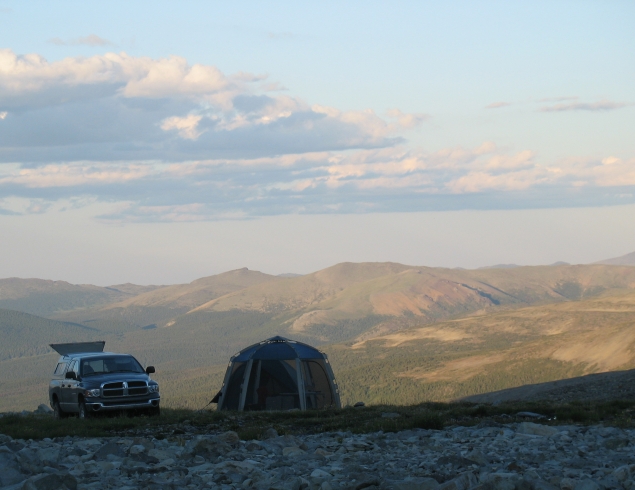 Set up camp on the only flat spot, if it rains I`ll get flooded out, but little chance of that.