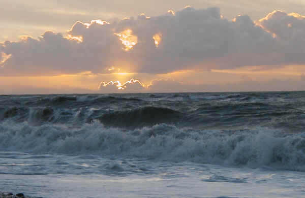 High seas and golden sky